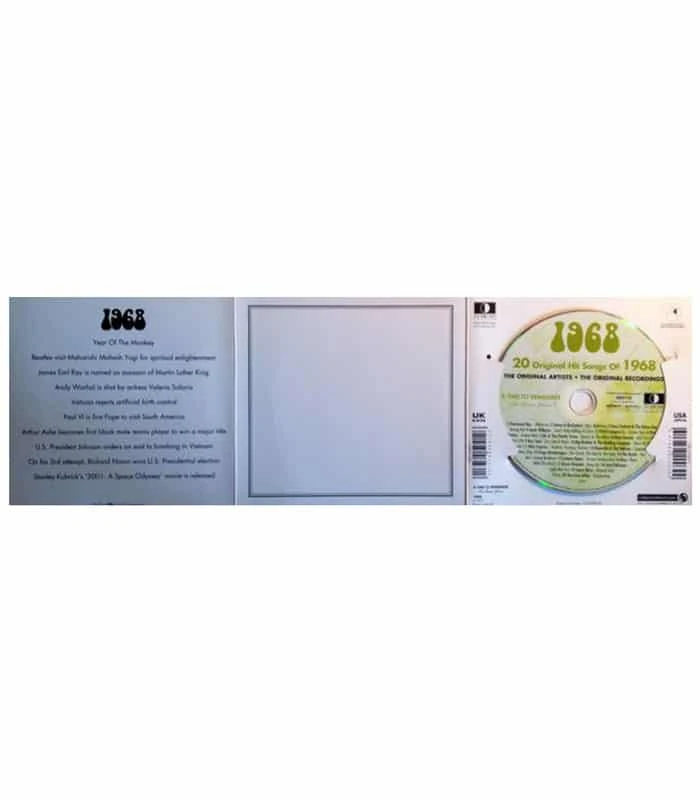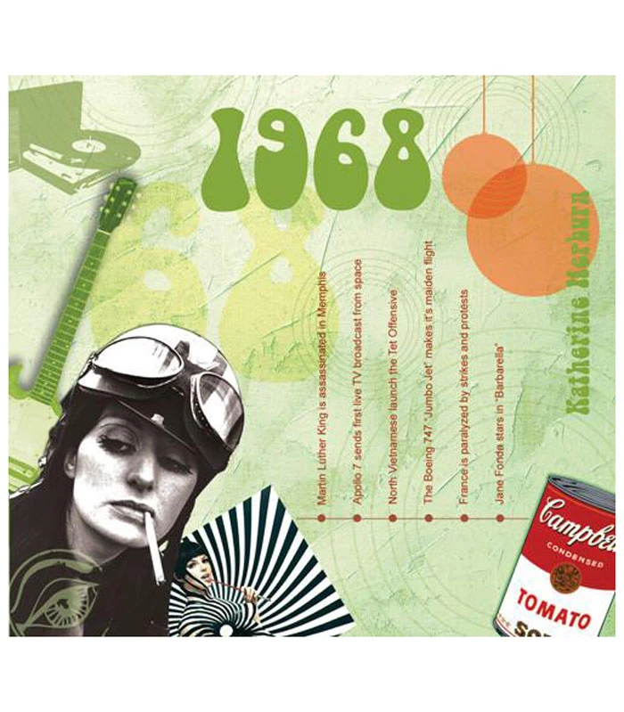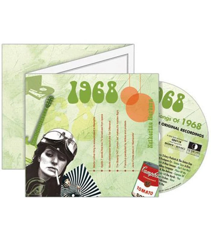 This unique, deluxe greeting card features fabulous iconic imagery along with news headlines and facts from 1963. The two-fold card, together with the included 20-track compact disc featuring many of 1968ās top artists and biggest hits, evokes a real sense of the year.