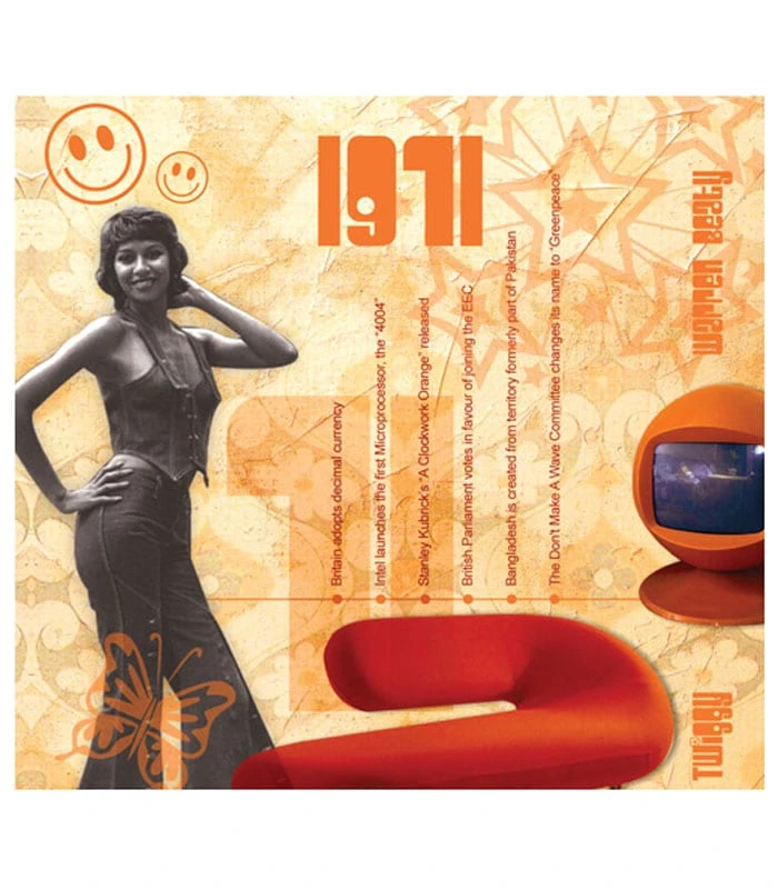 This unique, deluxe greeting card features fabulous iconic imagery along with news headlines and facts from 1971. The two-fold card, together with the included 20-track compact disc featuring many of 1971ās top artists and biggest hits, evokes a real sense of the year.
