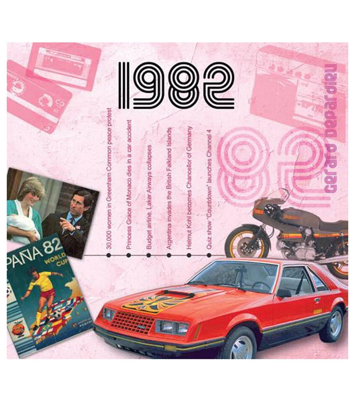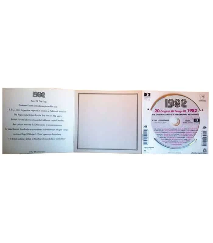 This unique, deluxe greeting card features fabulous iconic imagery along with news headlines and facts from 1982. The two-fold card, together with the included 20-track compact disc featuring many of 1982ās top artists and biggest hits, evokes a real sense of the year.