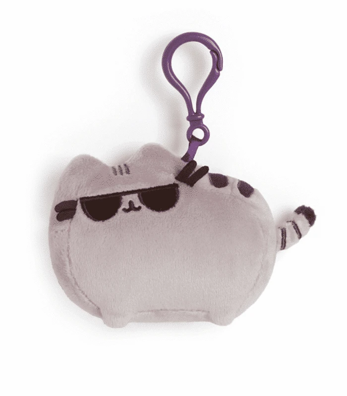 GUND is proud to present Pusheen , a chubby grey tabby cat who loves cuddles, snacks and dress-up. Pusheen backpack clip brings adorable web comic to life with stylish sunglasses. A sturdy plastic clip lets you show off your Pusheen fandom on the go!