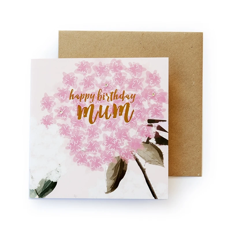 Botanicals – Happy Birthday Mum Greeting Card. This handmade greetings card has foil details. Moreover, the card comes with a high-quality envelope. In addition, The card is blank inside for your own message.