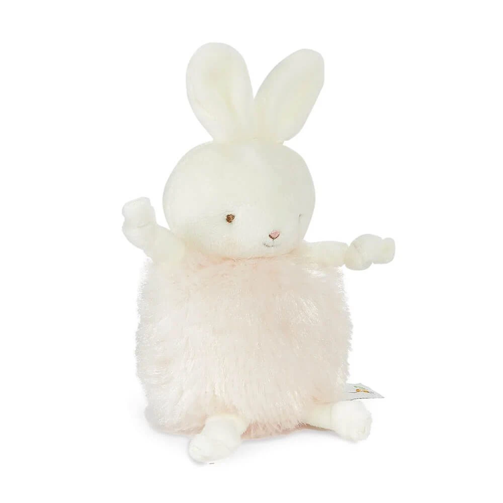 This teeniest new stuffed Bunnies by the Bay animal friend happily fits in the tiniest hands. This is a fluffy, round, pink furred stuffed Roly Poly bunny with velour face and dangly arms and legs. Features embroidered faces and signature blushed cheeks. Features knotted arms and legs, perfect for gentle chewing. Suitable from birth.