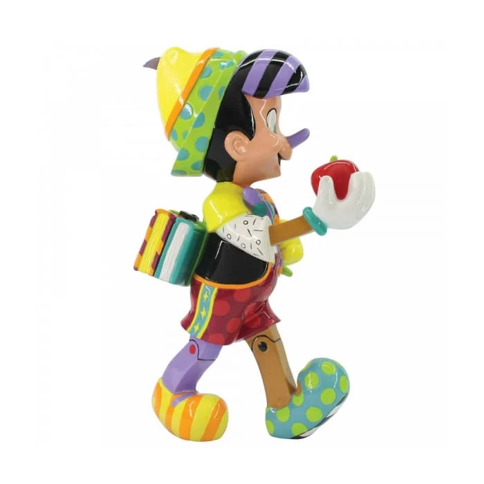 Disney by Britto – Pinocchio Figurine 80th Anniversary. 80 years ago, the animation was revolutionized by Disney’s Pinocchio, the touching fable of a wooden puppet built by a lonely woodworker who hoped that his great creation might become a real boy. This piece was designed by Britto in his pop signature art.