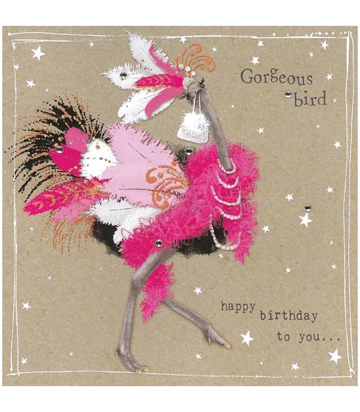 Fancy Pants Greeting Card with Gems – Gorgeous Bird, Happy Birthday
