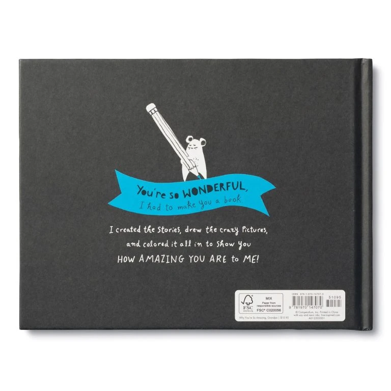 Celebrate how incredible Grandpa is with the wild and wonderful prompts in this keepsake fill-in book.