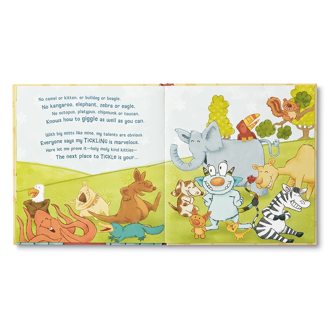 A loveable monster has just flown in from Planet Tickle on a mission is to tickle any child who happens to be following along with the Tickle Monster book.