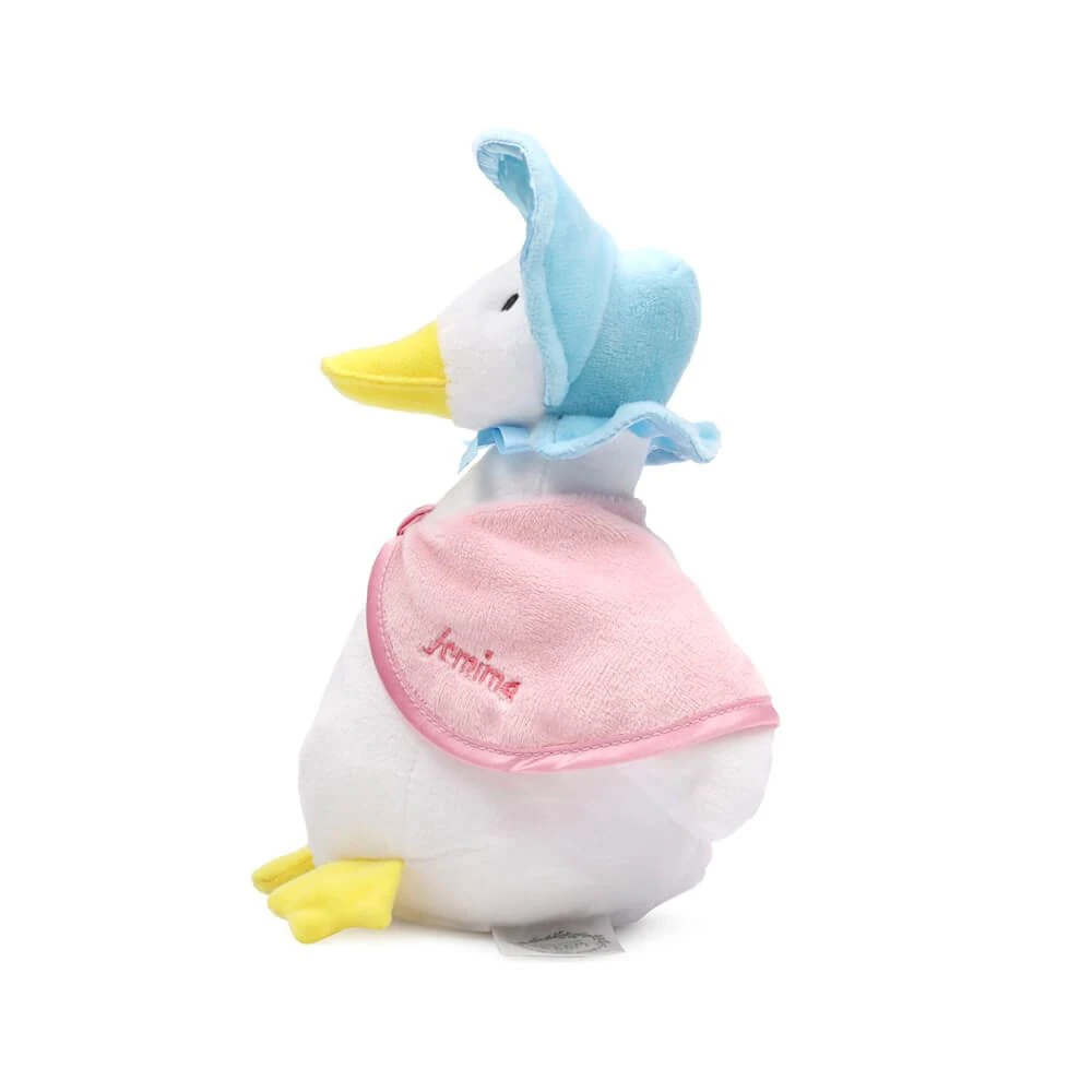 The perfect gift for a newborn baby, this beautifully crafted 22cm Jemima Puddle-Duck plush toy is made from silky soft plush fur with lovely embroidered elements to ensure it is safe and gentle against babyβs delicate skin. With her signature pink shawl, blue bonnet and soft little body this huggable Jemima Puddleduck beanbag plush will complete any babyβs nursery. Machine wash in cold water with care.